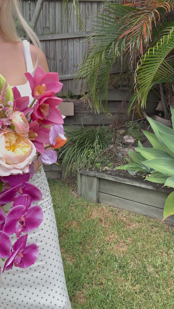 Every piece is designed and handcrafted in our Brisbane studio using premium artificial florals, so your blooms feel elevated and fashion‑forward, never plastic or tacky.