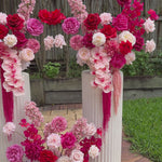 • Bold mix of raspberry, cherry red and blush tones for a striking ceremony moment with luxe, romantic depth