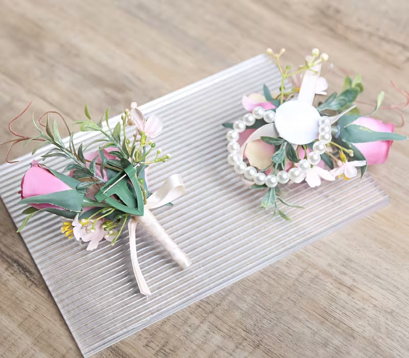 Sonder Wedding Buttonhole + Wrist Corsage (light pink rose)