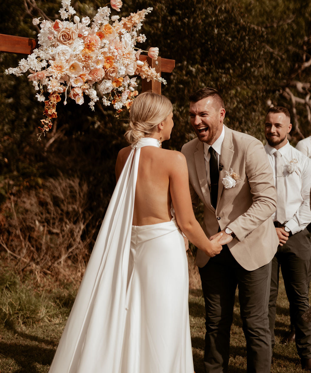 “Bronte and the Sonder & Stone Boutique team were amazing to work with. Bronte was so prompt in her responses and was so helpful in designing our wedding flowers and sticking to our budget. The flowers arrived weeks before our wedding. They were stunning and exactly what we hoped for. On the day they were easy to install (arbour flowers) and the bouquets were perfect. Our guests couldn't tell that they were fake flowers! Thank you again!